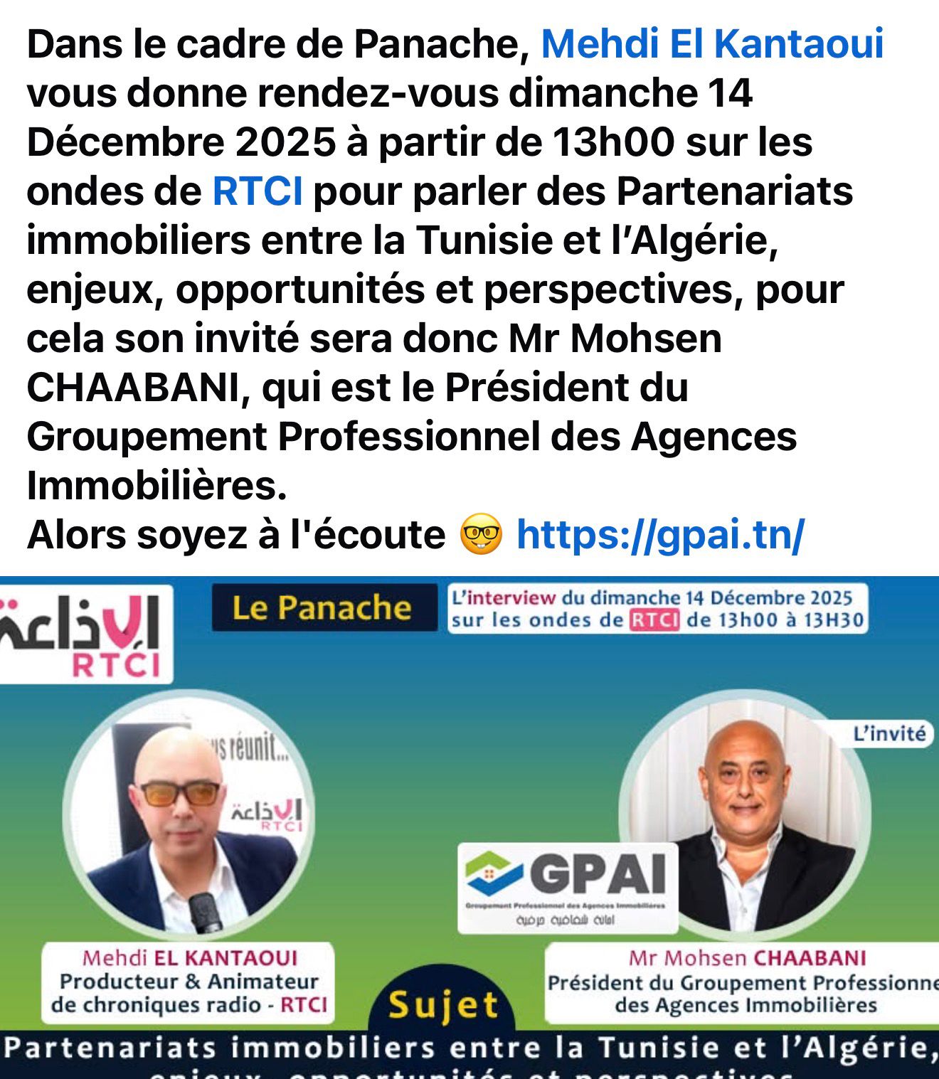 Dans le cadre de Panache, l’émission hebdomadaire diffusée en direct sur les ondes de RTCI et animée par Mehdi Kantaoui..